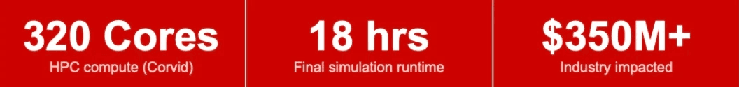 Simulations of this scale cannot run on workstation-class hardware. Fastway coordinated with Corvid HPC to provision the compute infrastructure required: 320 cores of managed, on-demand HPC power. Corvid handled licensing logistics and HPC environment setup, allowing the simulation team to focus entirely on physics rather than infrastructure. The final solve ran in 18 hours - a timeline that would have been unreachable on conventional hardware.